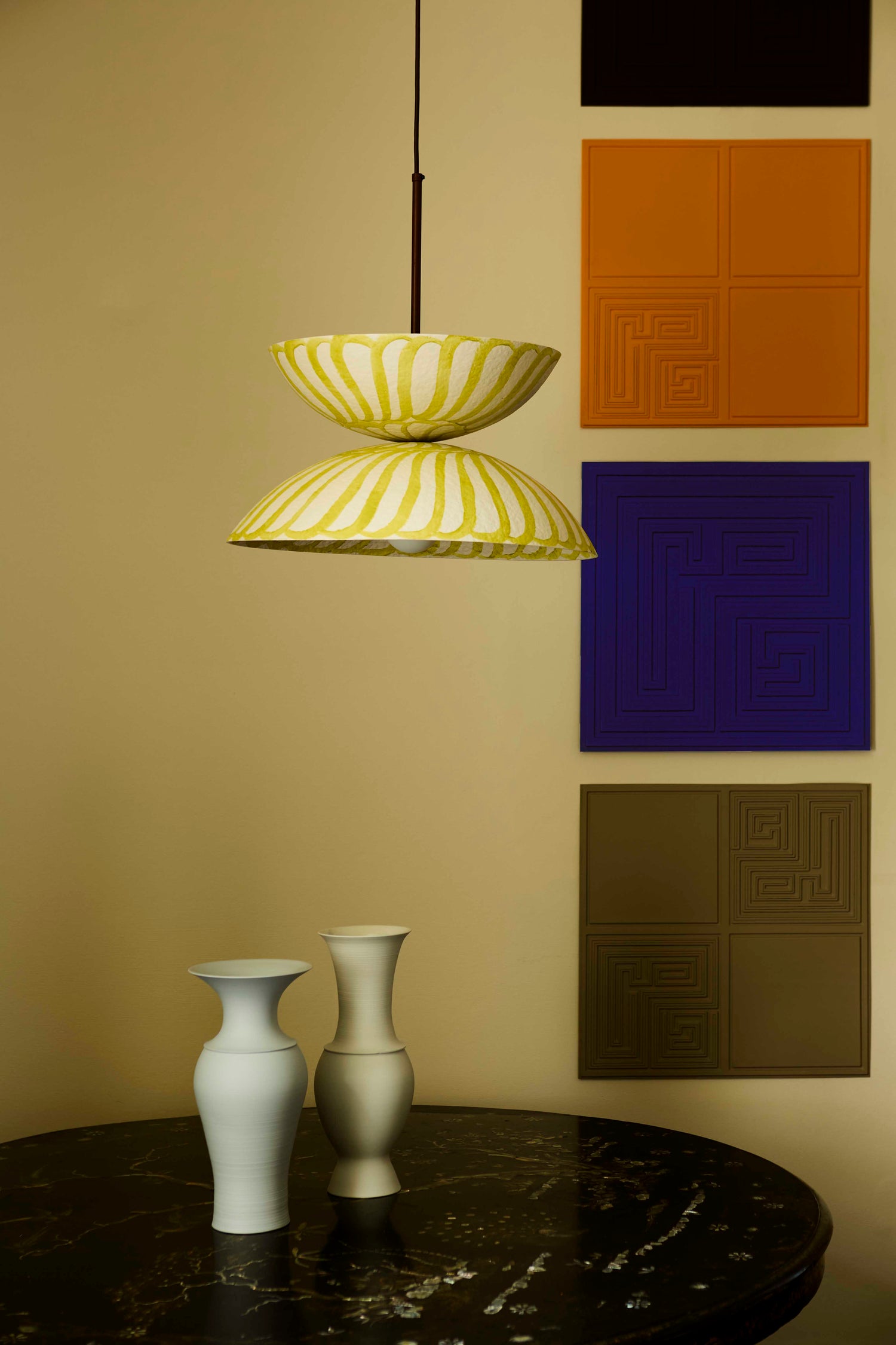 Our second seasonal capsule of hand-painted lighting was influenced by architect and designer, Charles Rennie Mackintosh, and mid-century textile design.